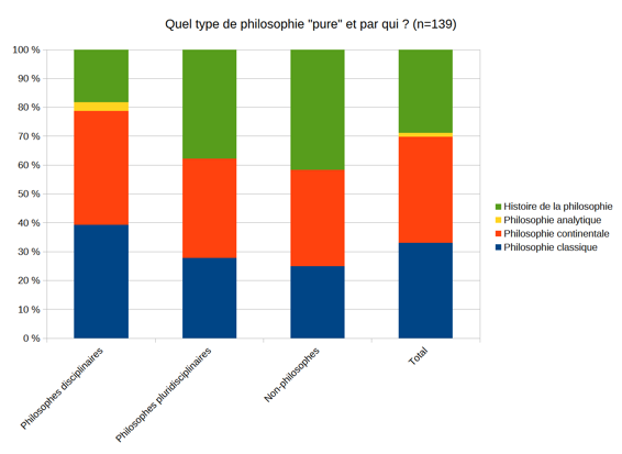 Répondre à ces deux questions, c’est déjà se donner les moyens d’objectiver d’éventuelles différences, sur ces deux aspects, d’avec le reste de la philosophie universitaire. Et ce faisant, nous disposerons d’éléments permettant de « mesurer » le degré de structuration de la discipline ou de « l’espace de travail » de ces acteurs.